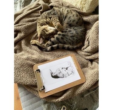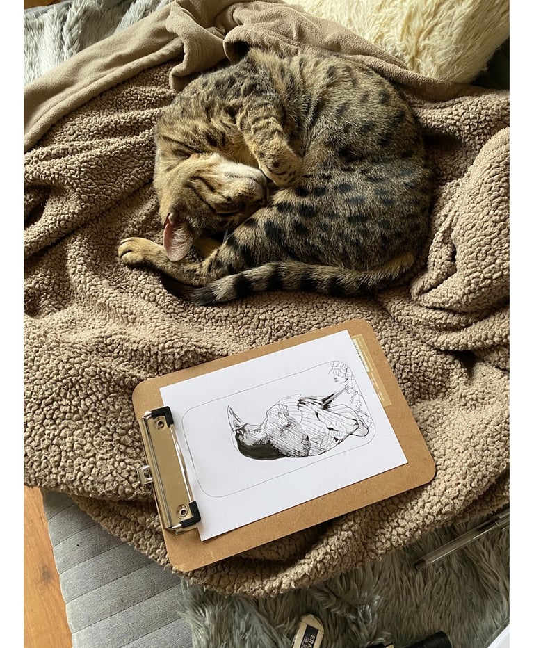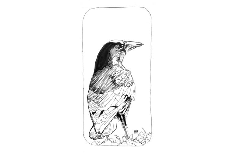 I went along to the playing fields the other day to take pictures of the crows, and then had a go at drawing one with the help of Chaos the cat.
